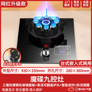 九腔猛火灶+玻璃+定时+电量防烫+防风炉架