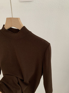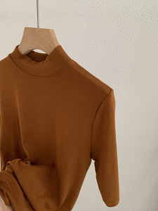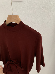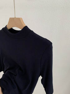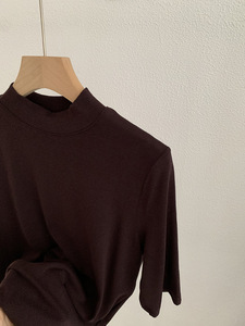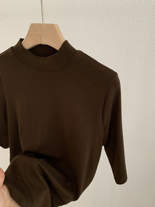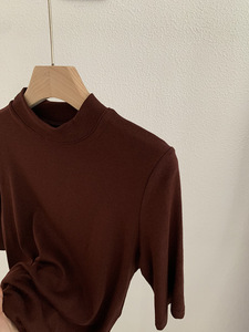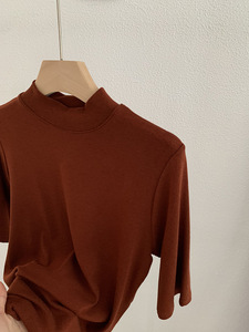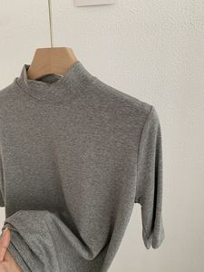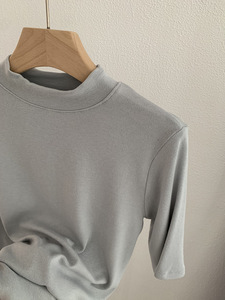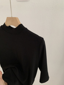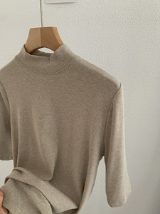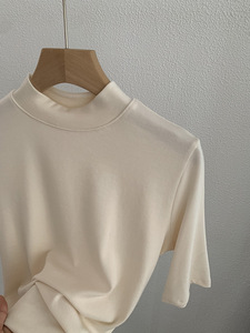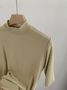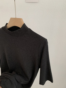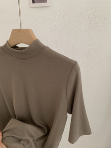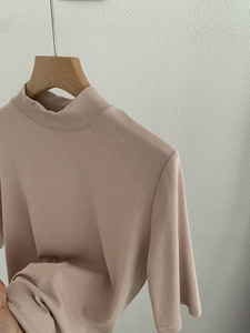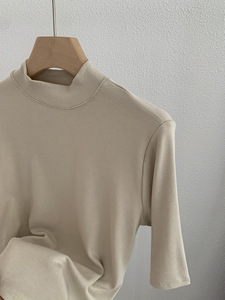 欧玛莱 半高圆领纯色中袖直筒套头内搭打底衫T恤上衣初秋女装4122
