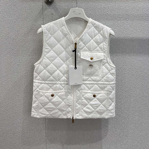 纯色菱格设计棉服马甲女 休闲简约百搭V领无袖外套秋季 ZW62615