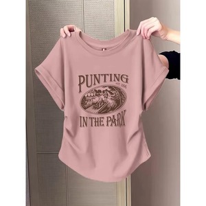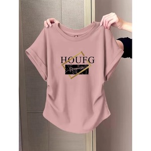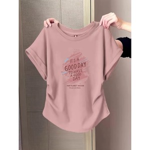 小さなフライングスリーブプリーツ右肩半袖Tシャツ女性用2025新しいデザインウエスト痩身ノースリーブトップ夏