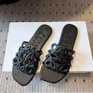 LOE一字凉拖女鞋欧美大牌同款2025新款编织镂空女士平底外穿拖鞋