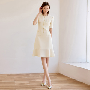 高级感黑色法式收腰圆领连衣裙女夏季新款职业装通勤小香风鱼尾裙