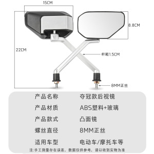 チャンピオン風バックミラー+8MMミラーホルダー[ペア]