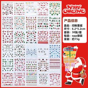 25年新款圣诞节美甲贴纸亮闪粉圣诞老人树麋鹿小雪人儿童指甲贴纸