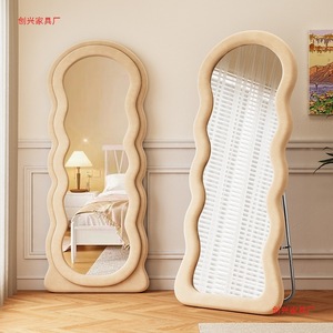 クリームスタイル全身鏡フレンチウェーブ全身フロアミラー全身鏡ホームベッドルームフィッティングミラーリビングルーム大型ミラー