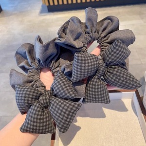 撞色海绵蝴蝶结格纹发圈百搭发绳丸子头皮筋头绳褶皱头花发饰批发