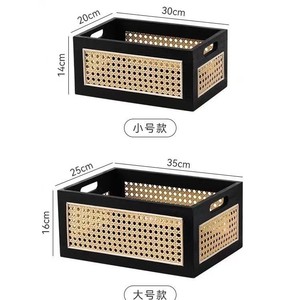 黑色收纳木质藤编筐杂物居木制居家编织收纳筐家用多用途编织筐