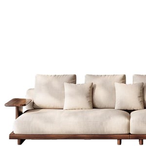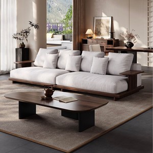 新中式黑胡桃木实木沙发组合宋式美学简约客厅直排棉麻布艺沙发