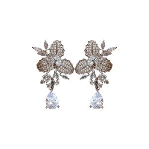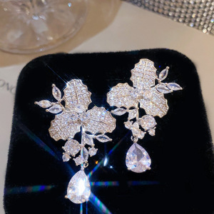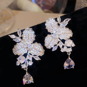 银针法式时尚花朵锆石耳环轻奢高级感耳钉女冷淡风耳饰设计感小众