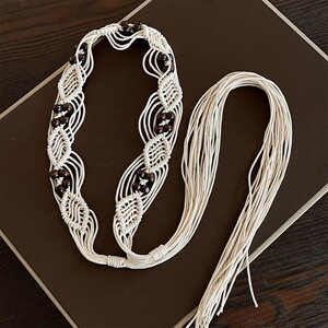 米白色镂空网木珠腰绳-182CM
