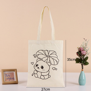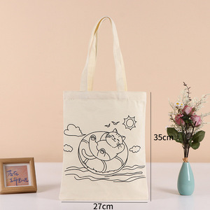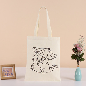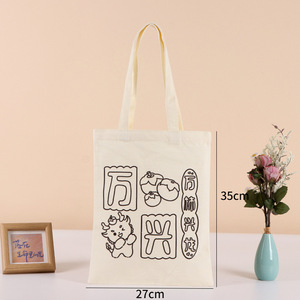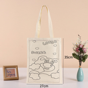 现货单肩漂漆包帆布包diy幼儿园手工线稿填色绘画袋子手提棉布袋