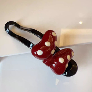 女性用のエレガントな赤いリボンのカモノハシクリップ、ハイエンドの2025年の新しいスタイルの後頭部のヘアクリップ
