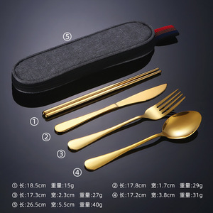 跨境不锈钢餐具1010刀叉勺筷套装户外野营便携式收纳袋餐具四件套