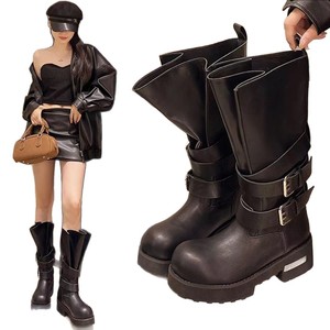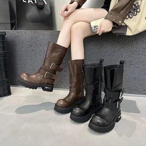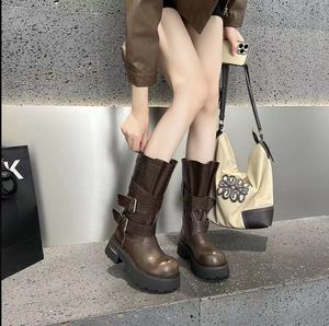 巴黎真皮毒液马丁靴做旧2025夏秋新款皮带扣粗跟机车靴显瘦中筒靴