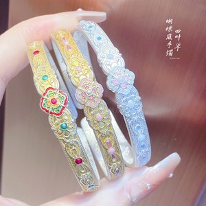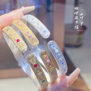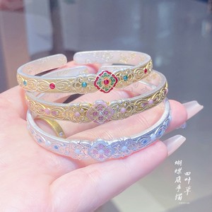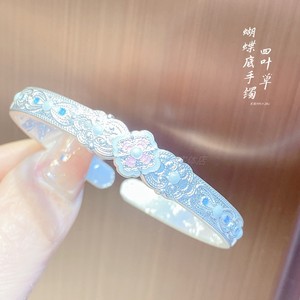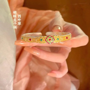 2025 新中国風のレトロなエナメル牡丹の花蝶底オープンブレスレット女性のためのソリッドブレスレットガールフレンドのため