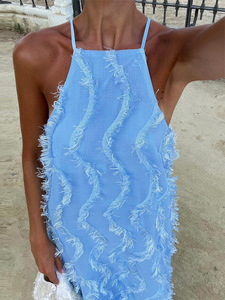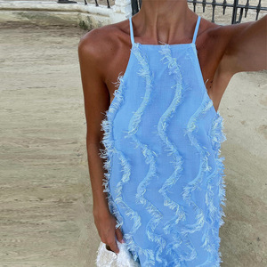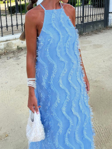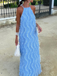 42125DBG クロスボーダー特別供給 2025 夏の新製品パーソナライズされたトレンディなホルターネックノースリーブストラップバックレスドレス女性用