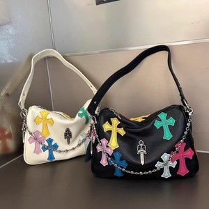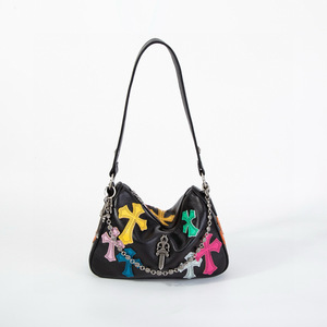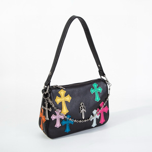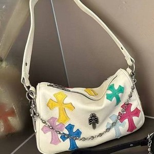 克罗芯彩色贴皮鸡块包2025款头层牛皮高级感链条腋下包撞色手提包