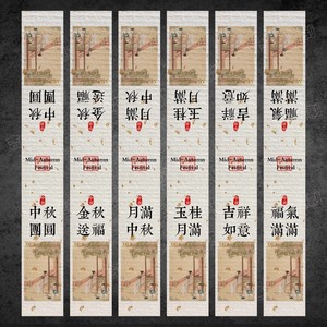 中秋团圆5.5x40厘米/一份10贴 洒金水纹