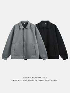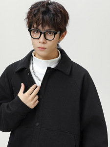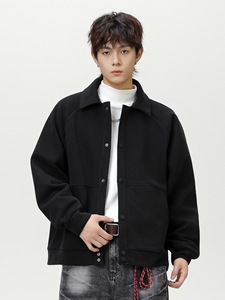 ラペルラグランスリーブカジュアルジャケットメンズ秋の新作トレンディなショートワイドシルエットテクスチャルーズビジネスウールジャケット