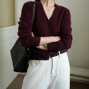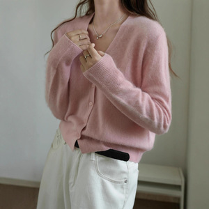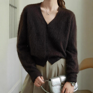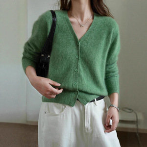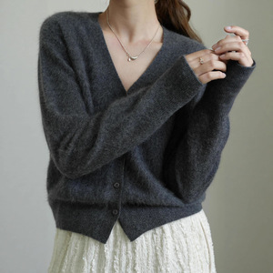 100%羊毛V领开衫拉绒不掉毛拉毛女秋冬舒适气质百搭外套文艺长袖