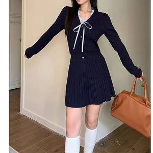 套装女2024秋季韩系减龄设计感针织开衫外套高腰显瘦半身裙两件套