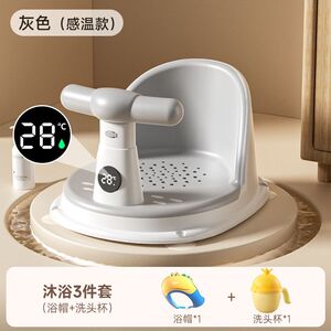 【デジタル表示温度感知モデル】ノルディックグレー+シャワーキャップ+シャンプーカップ