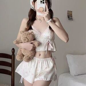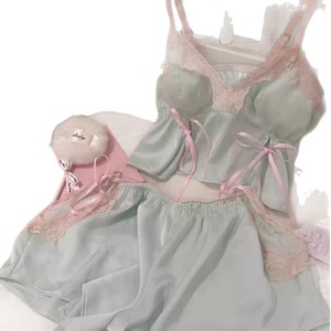 吊带短裤夏季新款甜美带胸垫家居服纯欲风简约吊带短裤睡衣套装