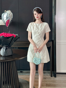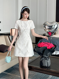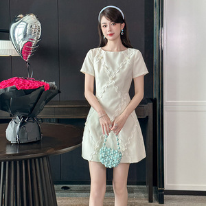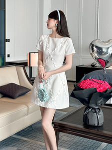 2025 新しい夏の女性のフレンチスタイルデザインホワイトドレス半袖ドレス 21726