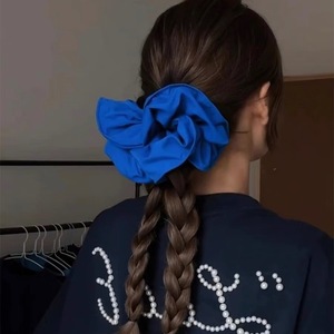 韩系简约百搭蓝色布艺大肠发圈女气质高马尾丸子头盘发头绳发饰新