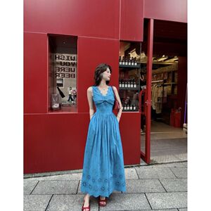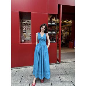 法式蕾丝镂空度假连衣裙女2025夏季新款甜美气质高腰显瘦勾花裙子