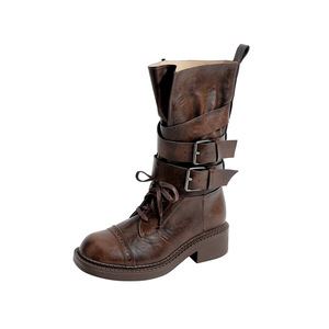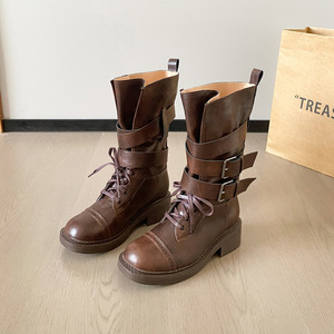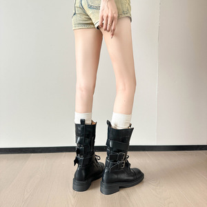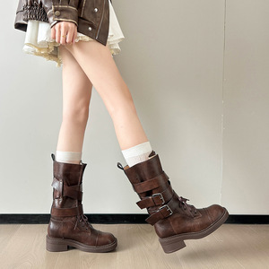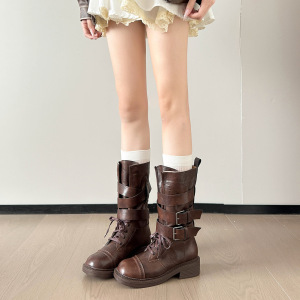 レトロ英国スタイルマーティンブーツ女性のための夏 2025 新しい厚いヒールベルトバックルショートブーツオートバイブーツ大きいサイズ 41-43