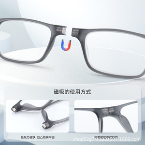 挂脖磁吸便携老花眼镜TR金属运动高清中老年护眼老花镜