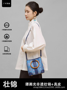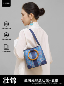 谭湘光名家壮锦圆环包包新中式民族风时尚百搭高级感湛蓝色水桶包