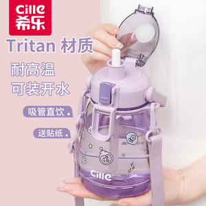 希乐水杯女大容量夏季tritan杯子学生儿童运动水壶大肚杯超大容量