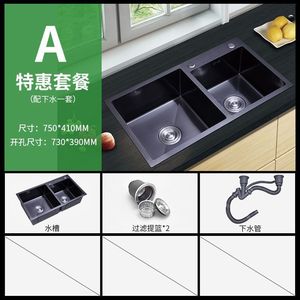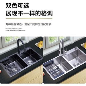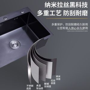ブラックナノ 304 ステンレス鋼多機能シンクキッチンシンクシングルスロットダブルスロット厚みのあるカウンタートップミドルボウル