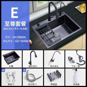 スタイル 5 [引き出し式 + 浄水蛇口 + 付属品一式] - 極厚 3mm シングルスロット [50*40] ブラック ナノメートル