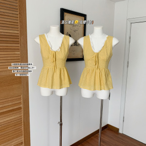 サンセットデイジー V ネックレースリボンノースリーブトップ女性の夏のアウターウェアウエスト痩身シャツ