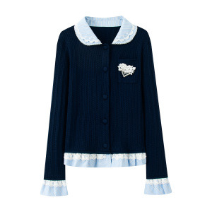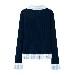 现货2025秋新款假两件娃娃领拼接针织开衫上衣FF25Q11ZM231