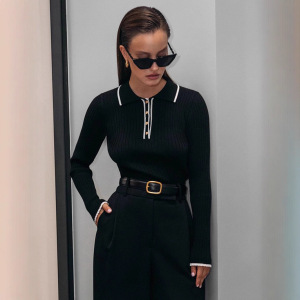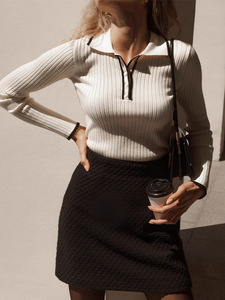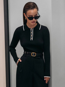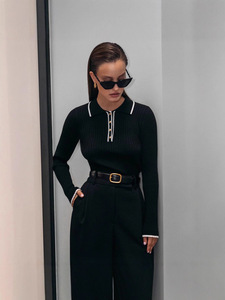 セーター クロスボーダー ボトムス ポロシャツ フレンチスタイル スリムピットニットセーター 女性用