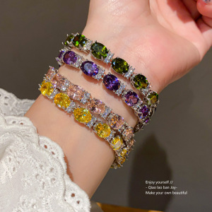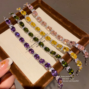 锆石椭圆形卡扣手链2025跨境温柔气质百搭通勤手环轻奢高级感手饰