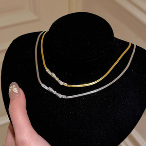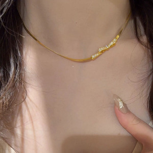 小红书爆款个性金色蝴蝶结点钻蛇骨链项链新款轻奢高级感一件代发