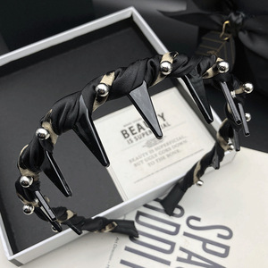 黑色高级感时尚钉珠发卡发箍女窄边带齿防滑气质头饰压发洗脸头箍