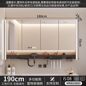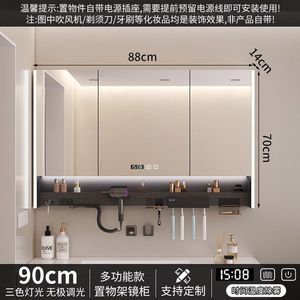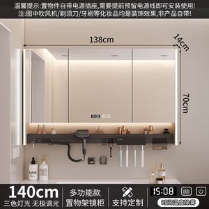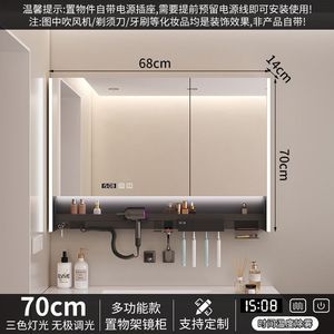 智能浴室镜多功能镜柜卫生间墙式牙刷消毒层板吹风机单独氛围一体
