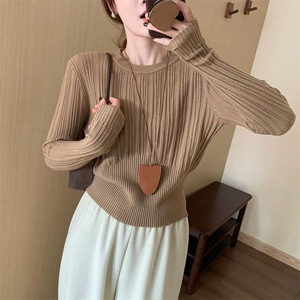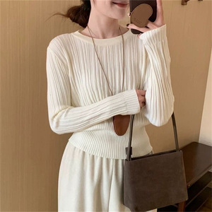 ウエストデザイン痩身ラウンドネックボトリングシャツ2025春の新作ハイエンドソフトワクシートップインナーシャツ