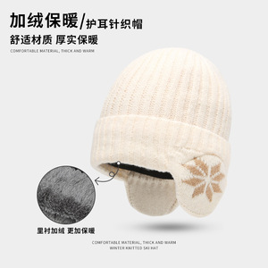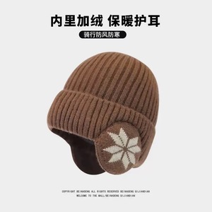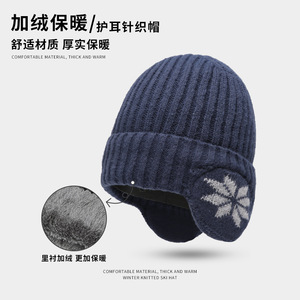 男性と女性のための冬の暖かい耳保護ニット帽子、アウトドアサイクリング、ベルベットの厚みのあるつば付き帽子、大きな頭囲、多用途のウールの帽子