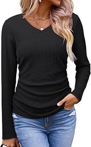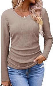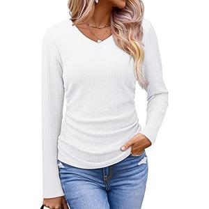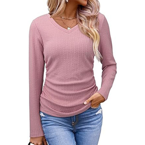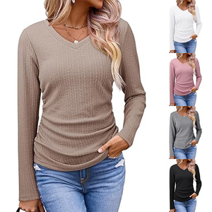 Amazon temu2025 新しいヨーロッパとアメリカのクロスボーダー女性のトップスカジュアル V ネック長袖シャツレディースファッション Tシャツ