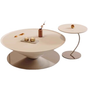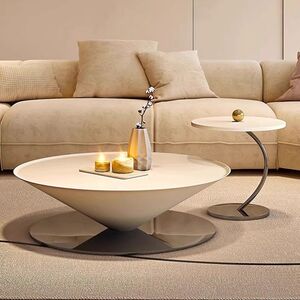 简约现代法式奶油圆形客厅极简茶几悬浮家用飞碟小户型设计师高级