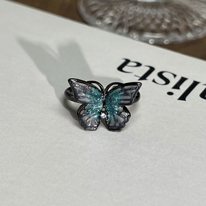 巴洛克暗黑风创意精致紫钻珐琅蝴蝶戒指中性风朋克辣妹个性指环潮