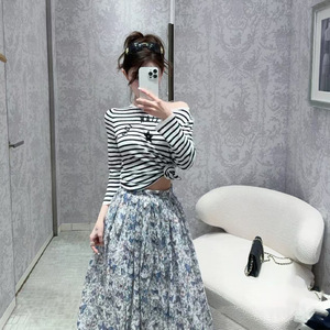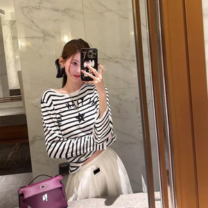 D家夏秋新款经典字母幸运五角星条纹圆领薄款长袖针织衫防晒衣女