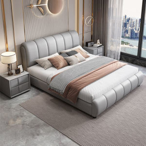简约真皮床+5D乳胶弹簧床垫+2柜